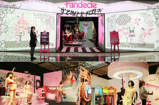 展区内的各品牌主题展示以各具特色的艺术方式呈现Fandecie的经典之作,将其SEXY&CHIC 的时尚风格演绎得淋漓尽致。“Super Sexy ”的无限性感魅力,“少女情怀”的可爱梦幻甜美,“Lucie's World”的悦动自由的想象力,“Sisterhood”运动的活力率性激情,以及“New Naturals”的森女精灵之田园梦境,五个主题五个故事的店中店在与消费者充分互动的同时,完美地传达了Fandecie性感、率性、纯真、可爱、自然、随性的百变混搭的时尚风格。