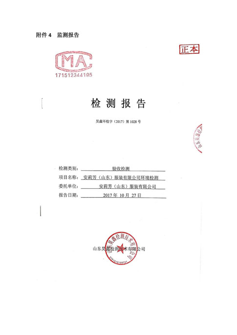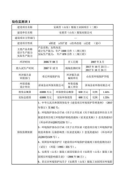 安莉芳山东公司二期项目竣工环境保护验收监测报告