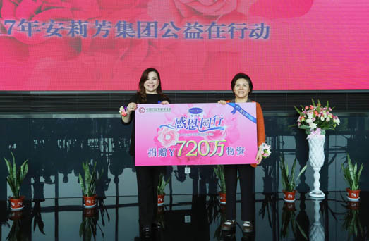 安莉芳蓝丝带公益行动自2006年以“关爱女性健康,缔造身心平衡”为宗旨创办以来,首次通过中国妇女发展基金会向福建南平市遭受水灾的贫困妇女捐赠物资以来,11年来累计捐赠物资价值达4962.4万元,惠及18个省区市妇女群众。